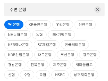 은행의 하위메뉴로 검색이 가능한 은행은 국민은행, 우리은행, 신한은행, 농협은행, 농협, 기업은행, 하나은행, 제일은행, 씨티은행, 산업은행, 대구은행, 부산은행, 광주은행, 경남은행, 전북은행, 제주은행, 새마을금고, 신협, 수협, 축협, HSBC, 상호저축은행이 있습니다. 우체국이 빠진 것은 조금 의외네요.
