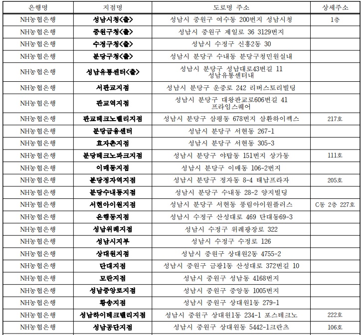 • 성남사랑 상품권은 관내 금융기관 118개소에서 구매 및 환전가능함
